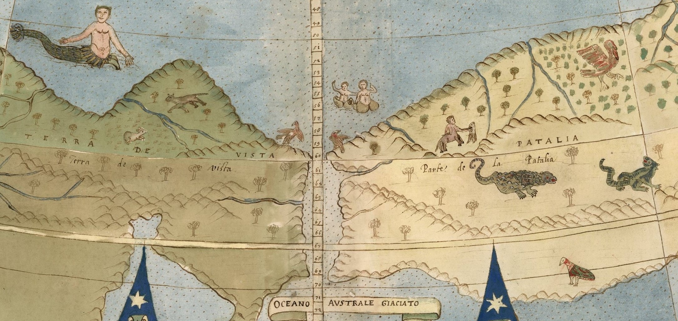 Spațiile neexplorate ale hărții nu au rămas goale, ele sunt populate atât de ființe și creaturi fabuloase, cât și de unele imaginare, demoni, spirite și monștri, transformând totul într-un univers, plin de avertismente și de posibile revelații. Pământuri și animale dispărute, creaturi incredibile, centauri, grifoni, tritoni, ihtiocentauri, manticore și sirene, inorogi, balauri și dragoni, păsări și șerpi gigant, uriași, ciclopi și multe altele. În partea a doua a materialului vom urca detalii și capturi de ecran inedite cu toate aceste grozăvii.