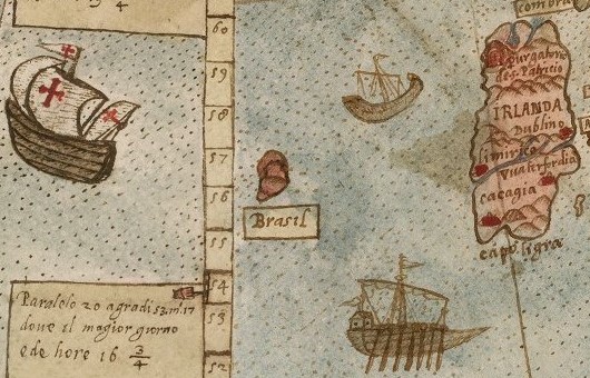 Pe planisferul lui Urbano Monte, mai jos de Frisland apare Brasil, o altă insulă-fantomă. Așezată la vest de Irlanda, ea este descrisă ca un tărâm ascuns de cețuri inexplicabile, vizibil doar rareori, uneori desenat ca un cerc perfect străbătut de un canal misterios. Născută din mitologia celtică și din poveștile marinarilor, Brasil a fost preluată timp de secole pe hărți oficiale, deși nimeni nu a putut-o găsi vreodată. Unele expediții au căutat-o intens și mulți au pretins că au văzut-o.