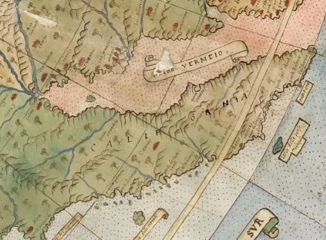 În al treilea rând vedem California ca și peninsulă cu denumirea scrisă clar ”CALIFORNIA”. Este separată de vestul Americii de Nord de o mare rozalie numită Mare Vermeio (Golful actual al Californiei). Deși America era numită oficial încă din 1507, pe harta lui Monte din 1587 California apare deja cu nume propriu, ca peninsulă separată prin Mare Vermeio. Este mirabil cum un cartograf a identificat corect ca peninsulă, și denumit o regiune încă misterioasă, înainte ca exploratorii să o fi cunoscut complet. Nu este prima oară când putem deduce că navigatorii și cartografii epocii, aveau informații mult mai avansate decât o recunoaște istoria oficială.