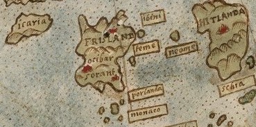 Pe harta lui Urbano Monte (1587), Frisland se întinde misterios între Islanda, Irlanda, Groenlanda și coastele nordice ale Europei, o insulă mare desenată cu orașe, golfuri și relief, de parcă ar fi un teritoriu complet cunoscut. Totuși, nimeni nu a ajuns vreodată pe ea, este născută din povești vechi, relatări ale fraților Zeno (Frații Zeno, navigatori venețieni din secolul XIV, au lăsat o relatare legendară despre călătoriile lor în Nordul Atlanticului, în care descriu insula Frisland ca pe un teritoriu real, cu orașe și golfuri, influențând astfel cartografia renascentistă și perpetuând misterul insulei-fantomă) și confuzii ale navigatorilor renascentiști. Frisland rămâne o insulă fantomatică plutind în Atlanticul de Nord, ca un tărâm care pare să aștepte încă să fie explorat de marinari temerari și norocoși.