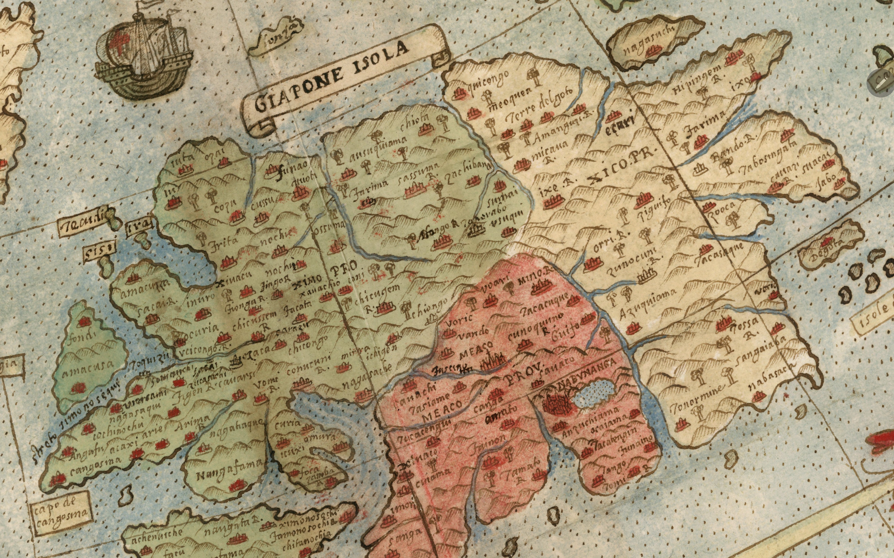 Într-o Asie încă vag cunoscută, Japonia apare astfel ca o insulă mai degrabă unică decât arhipelag și supradimensionată, însă foarte bine reprezentată. Informația a fost preluată apoi de aici și integrată rapid în cunoașterea geografică europeană a sfârșitului de secol XVI.