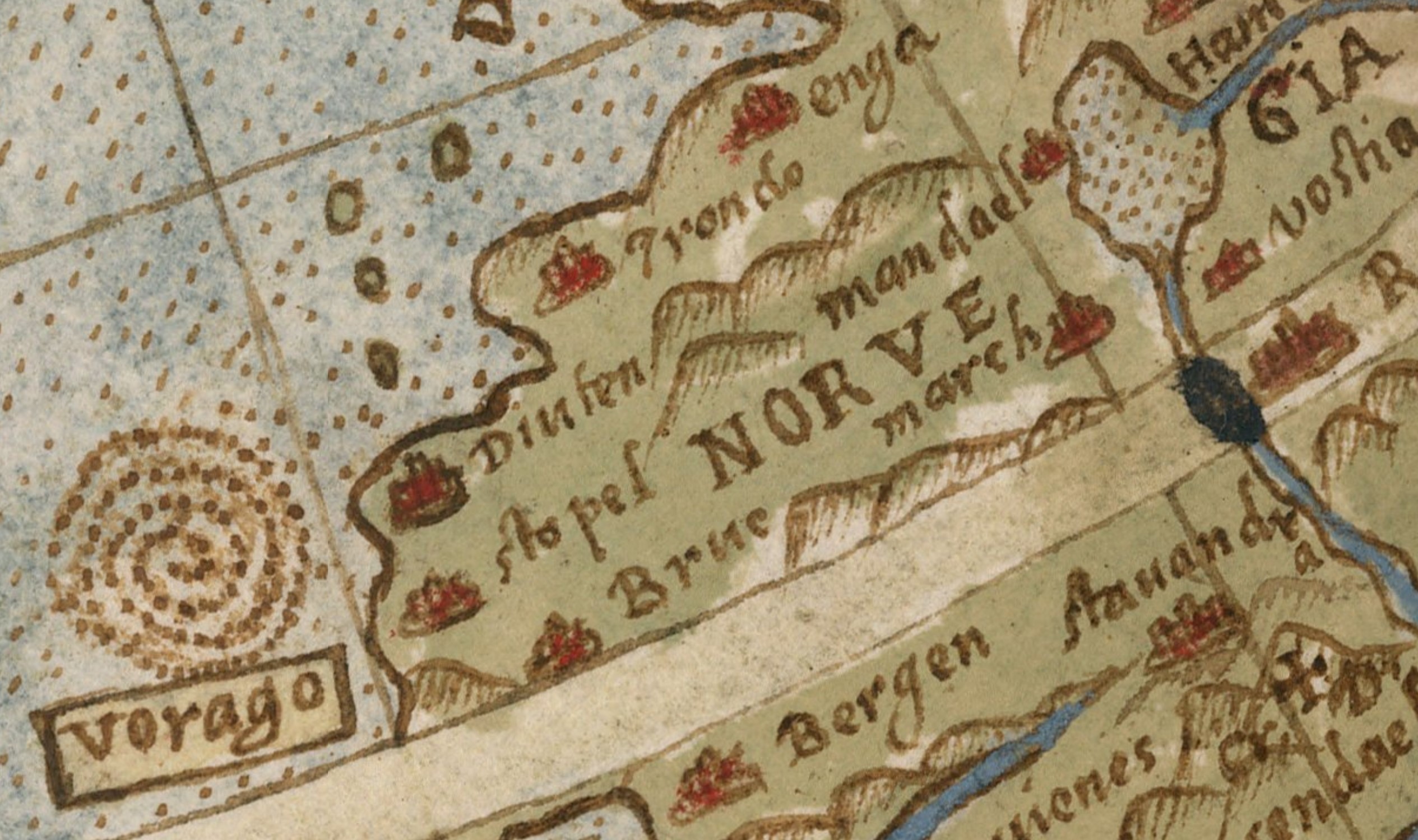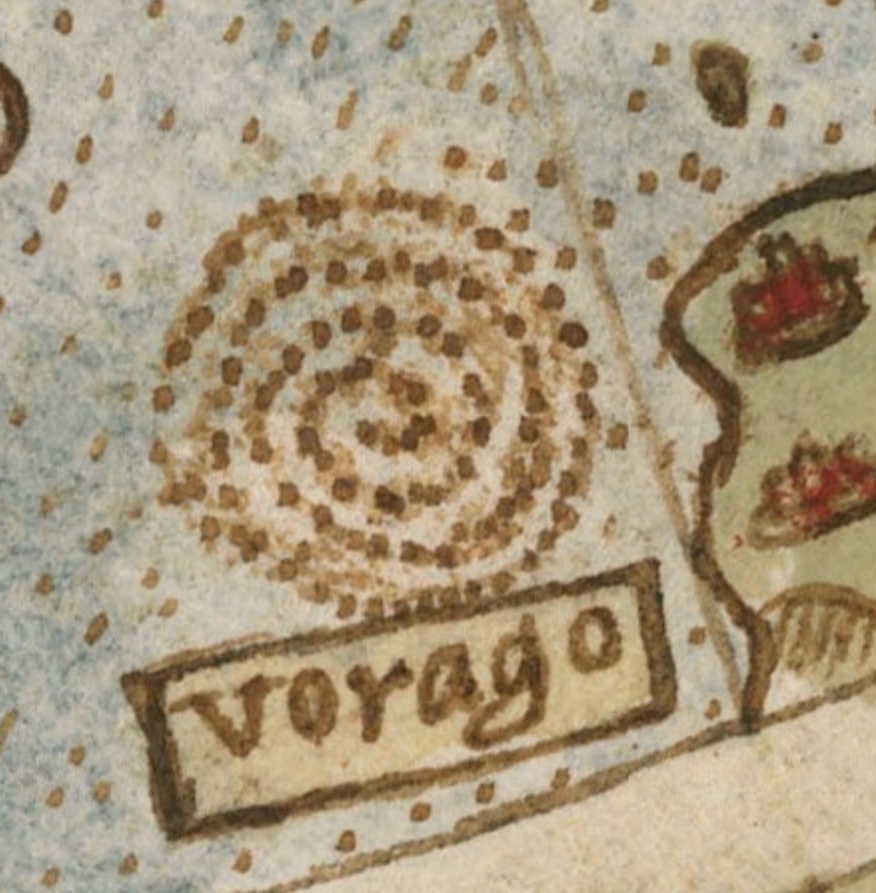 Un ochi atent, va descoperi un detaliu foarte interesant marcat pe hartă, localizat în largul coastelor Norvegiei. Este un vortex, un vârtej marin foarte mare, care nu este ilustrat acolo la întâmplare pentru că îl găsim și pe alte hărți vechi. Acest vârtej uriaș nu e o fantezie, ci rezultatul observațiilor marinarilor acumulate în timp. Vorbim despre faimosul Moskstraumen, un fenomen real atât de puternic încât a intrat în legendă și a dat lumii cuvântul „maelström”. Cartografii de odinioară au îmbinat știința, experiența și mitul, marcând pe hartă un pericol autentic al mării. Astăzi știm că acolo există într-adevăr vortexuri marine majore, ceea ce confirmă acuratețea anumitor reprezentări cartografice vechi de sute de ani. În acest context, deschidem o mică paranteză pentru iubitorii de mistere, ca să pregătim finalul primei părți într-o notă de suspans!