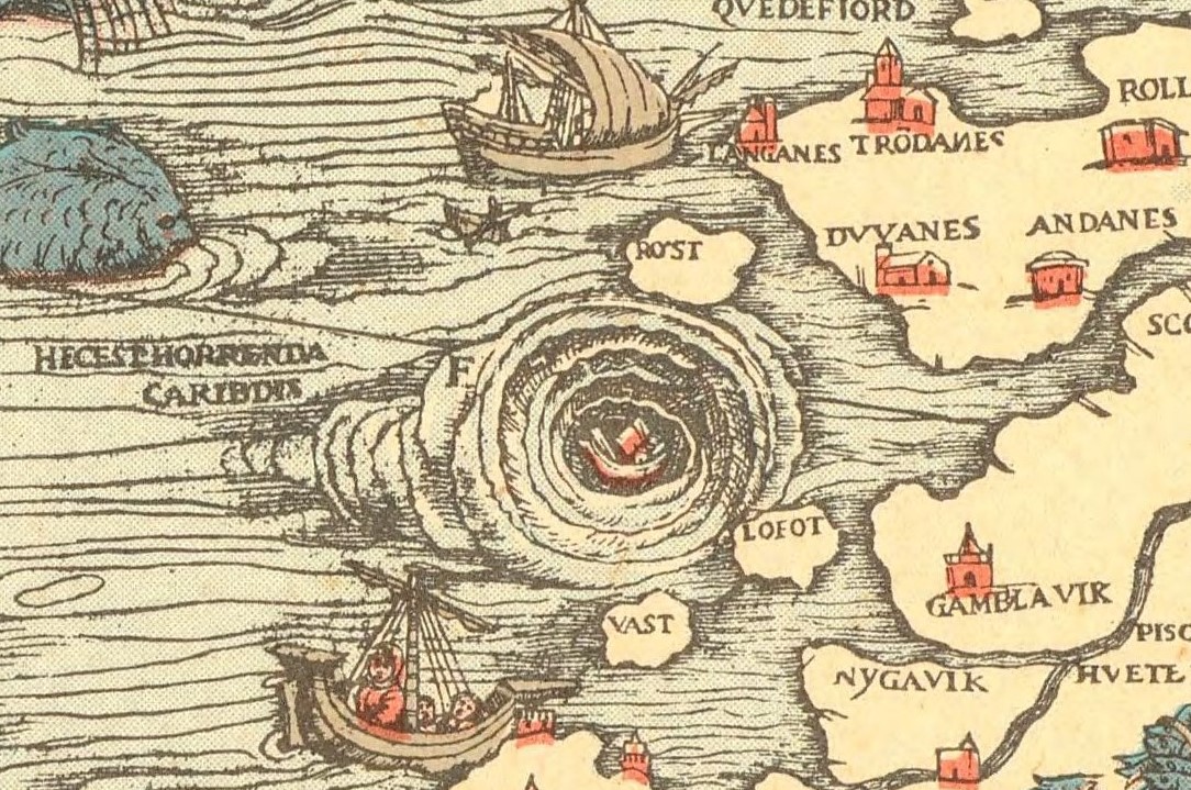 În tradițiile antice și medievale, regiunea extremă a Nordului era asociată cu mistere cosmice și hidrologice, printre care celebrele vârtejuri sau hăuri de apă care guvernau fluxul și refluxul mării. Autorii timpurii precum Paul Diaconul (710–790), Adam din Bremen (1050–1083), Isidore din Sevilla (c. 560–636) și lucrări precum Topographia Hibernica a lui Giraldus Cambrensis (1146–1220) sau Historia Norvegiae (c. 1180), descriu abisuri sau vârtejuri care absorb valurile și le revarsă, provocând curenți puternici și periculoși pentru navigație.