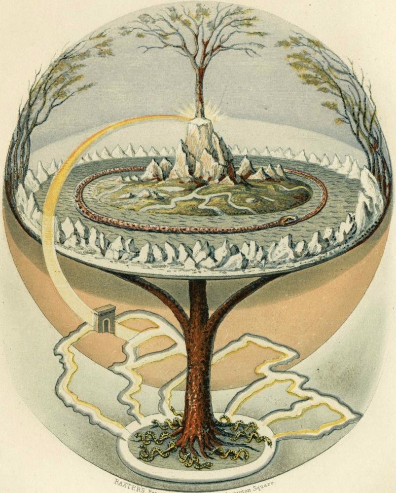 Un element comun multor astfel de tradiții este prezența unui munte axial sau a unui arbore cosmic, din care pornesc apele lumii, simbol al unui centru stabil într-un univers fluid. Această structură apropie miturile nordului de reprezentările medievale ale unui pol în jurul căruia se organizează apele și geografia.